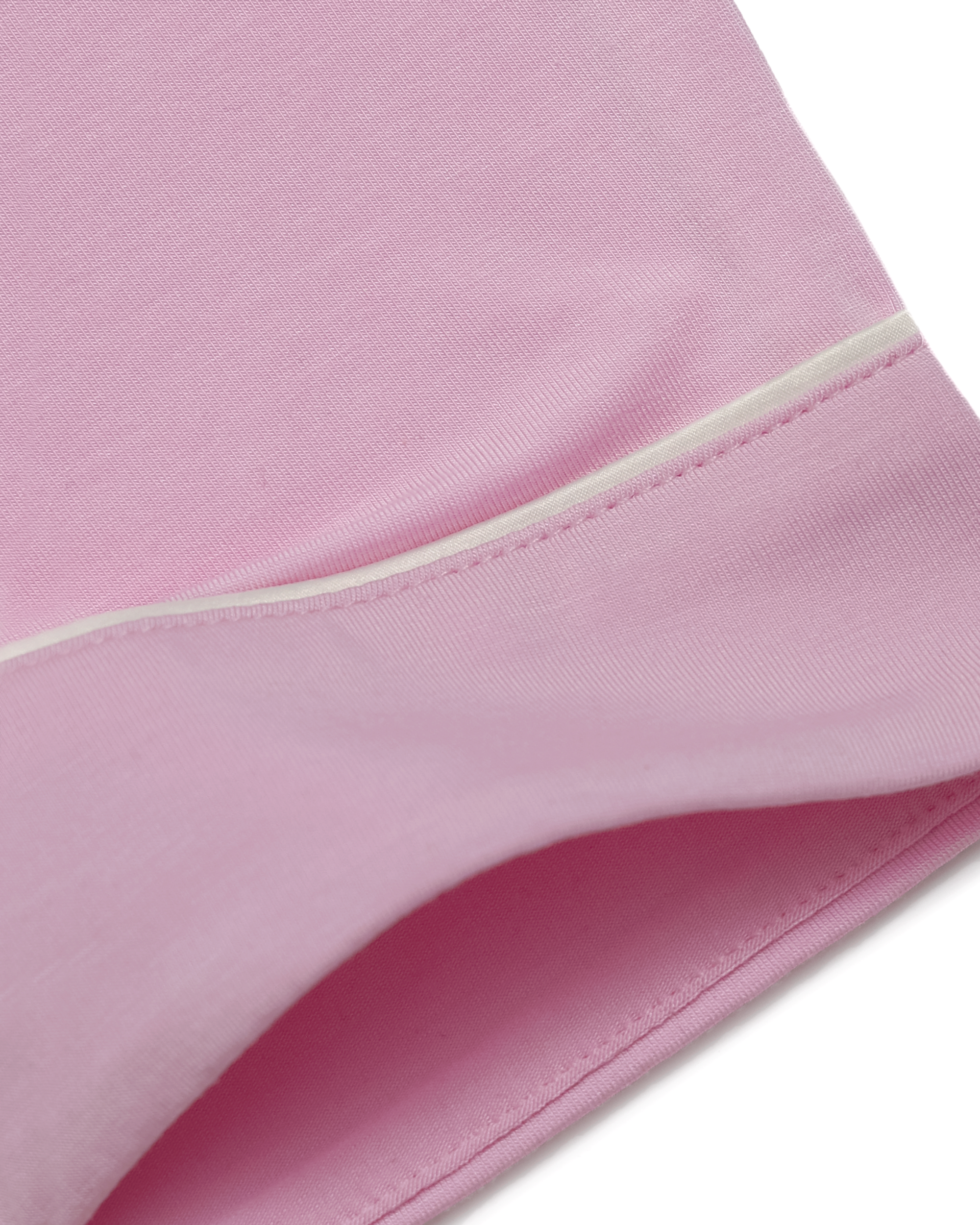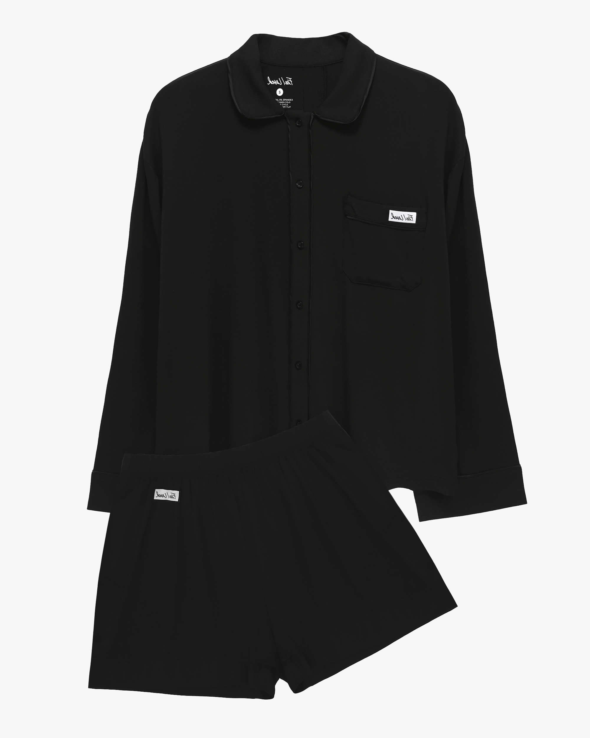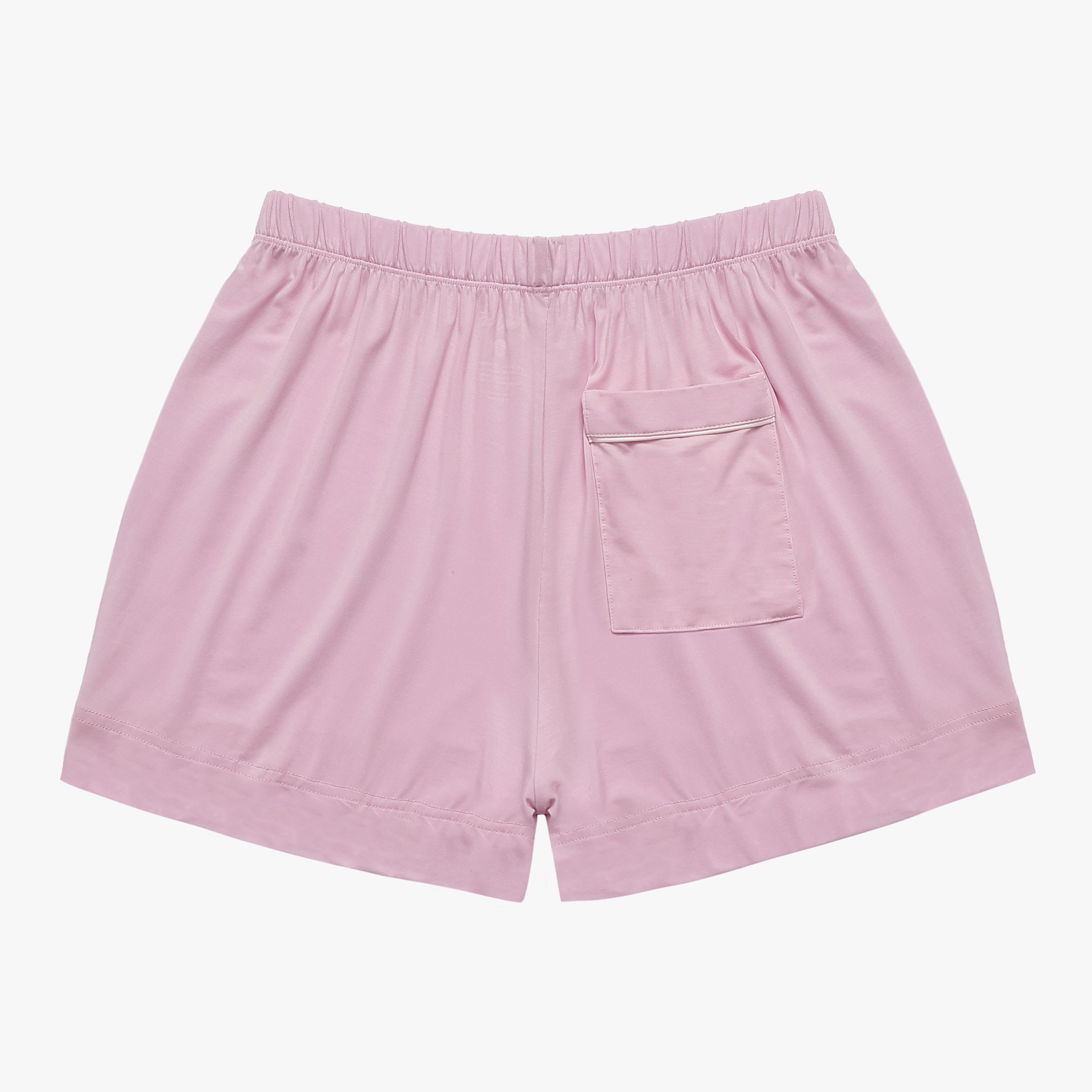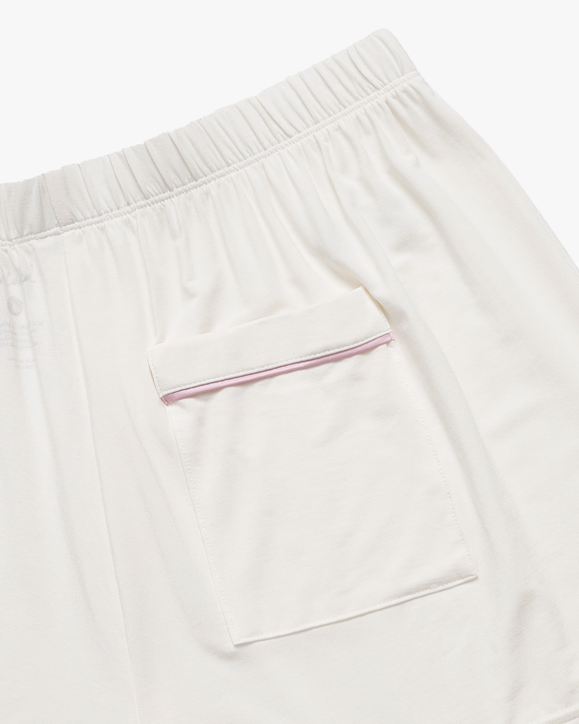 The matching pajama shorts boast the same elegant feel with a 2" inseam and an elastic waistband for a relaxed fit, along with a practical single pocket on the back right.