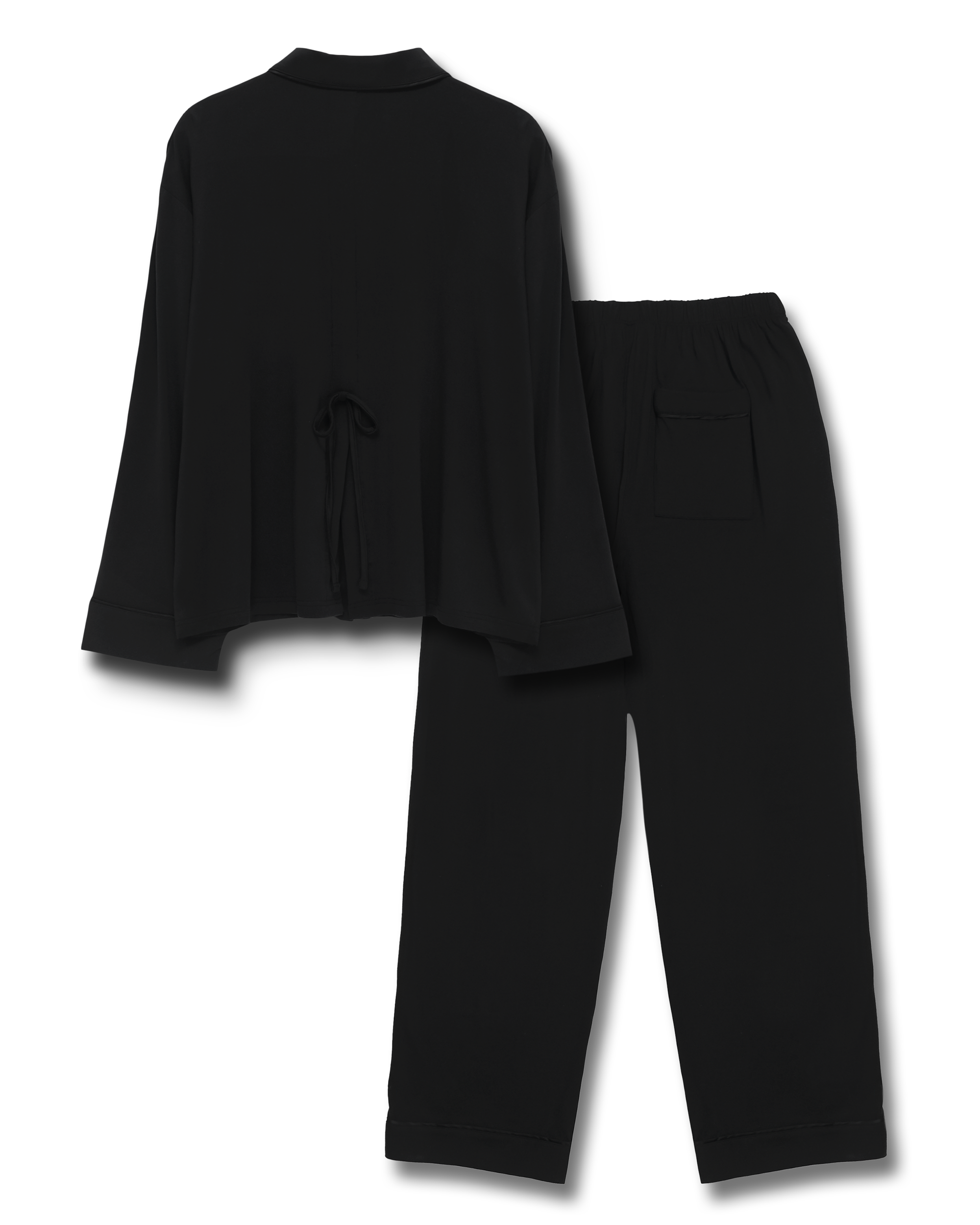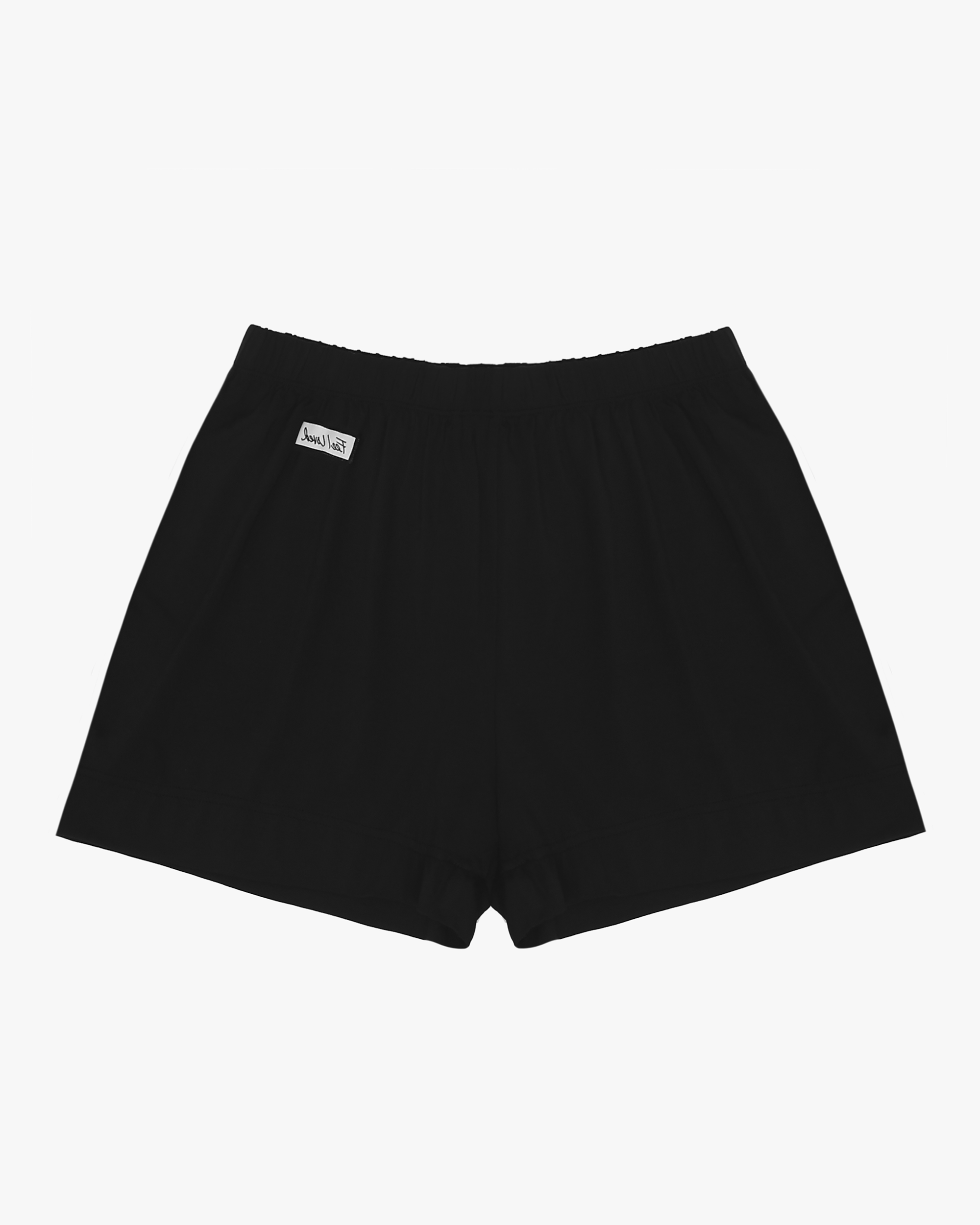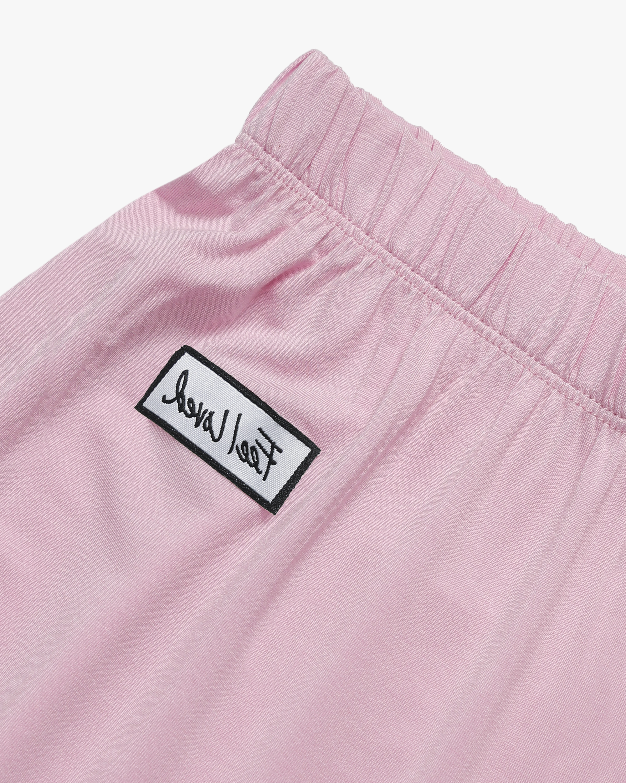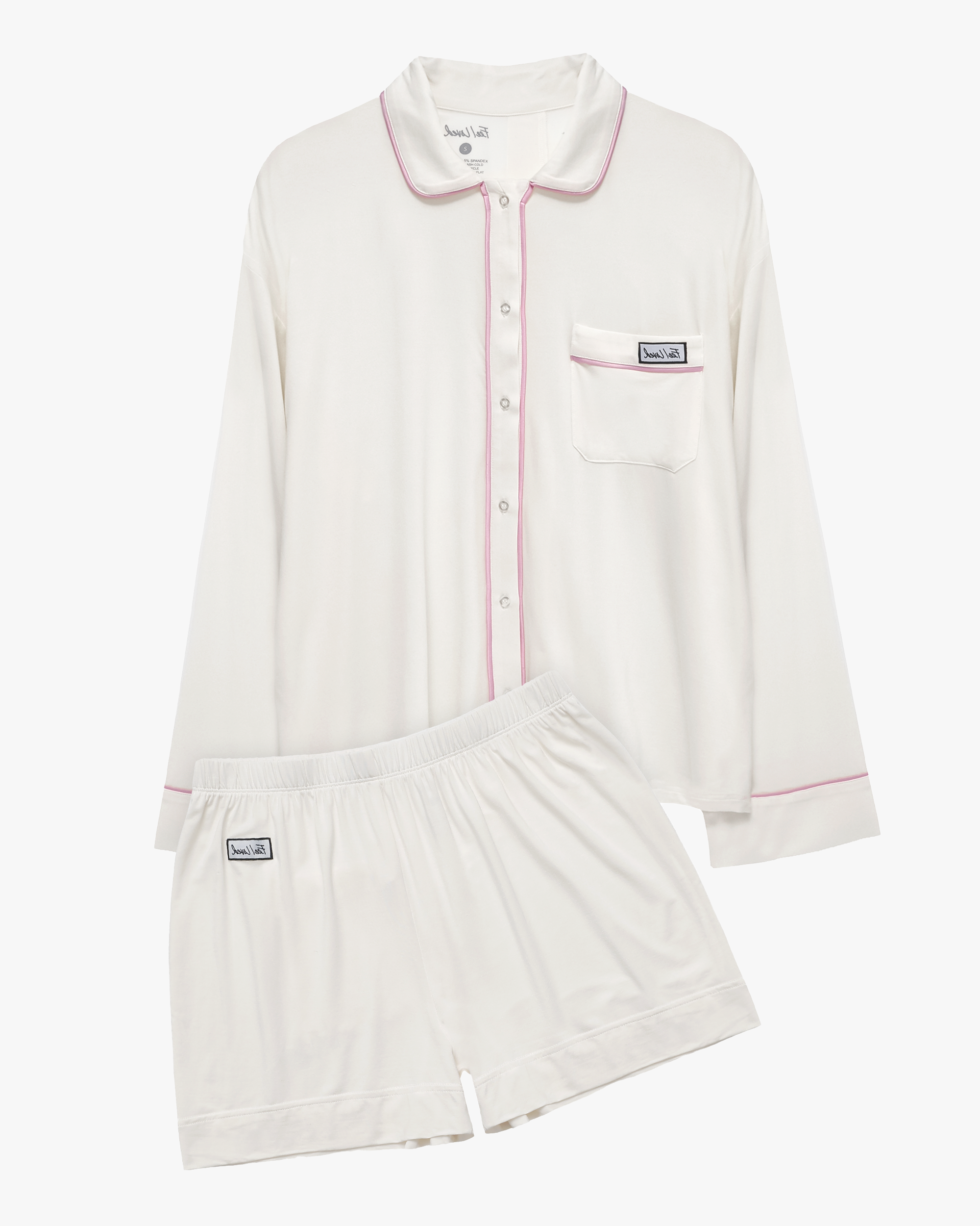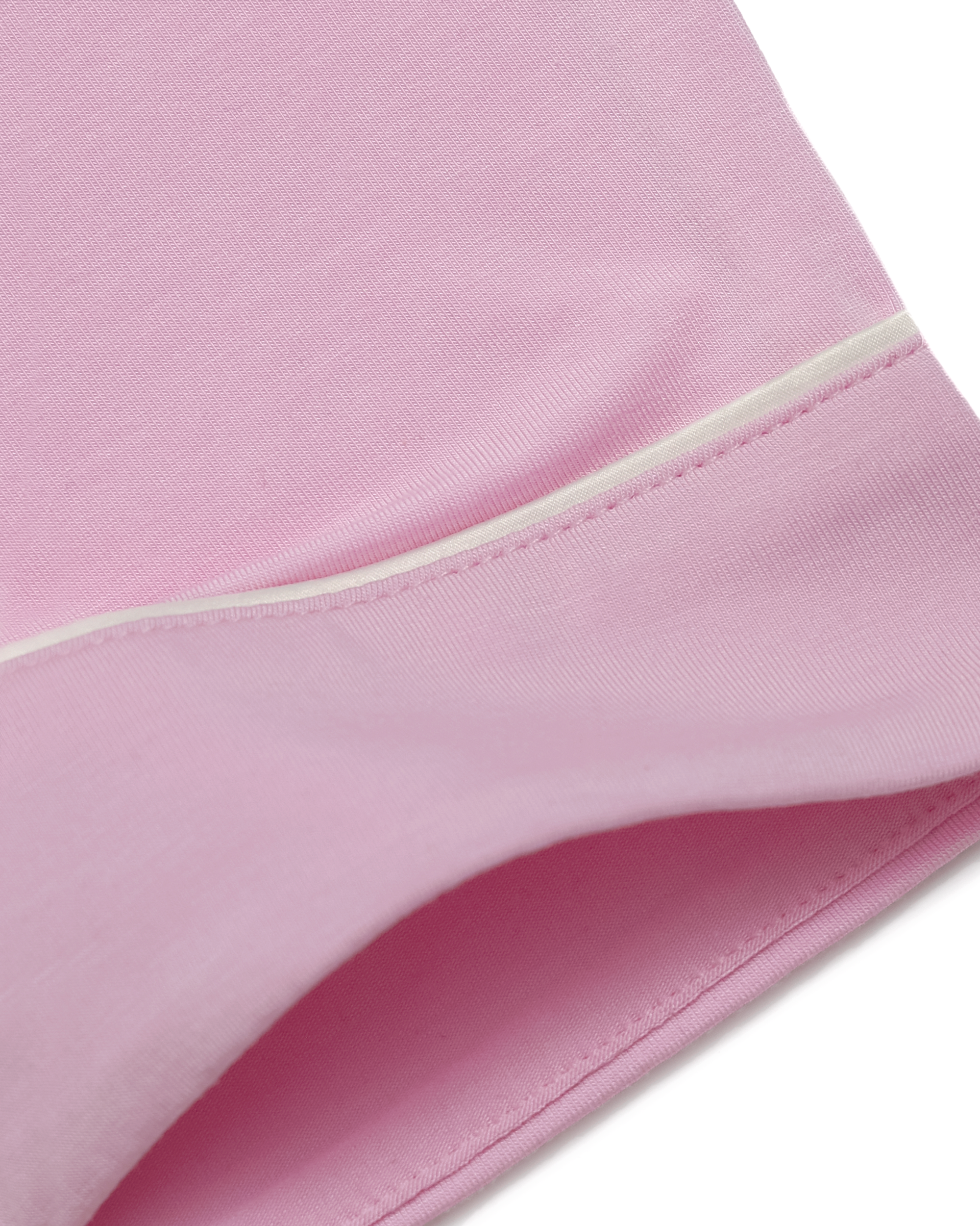The matching pajama shorts boast the same elegant feel with a 2" inseam and an elastic waistband for a relaxed fit, along with a practical single pocket on the back right.