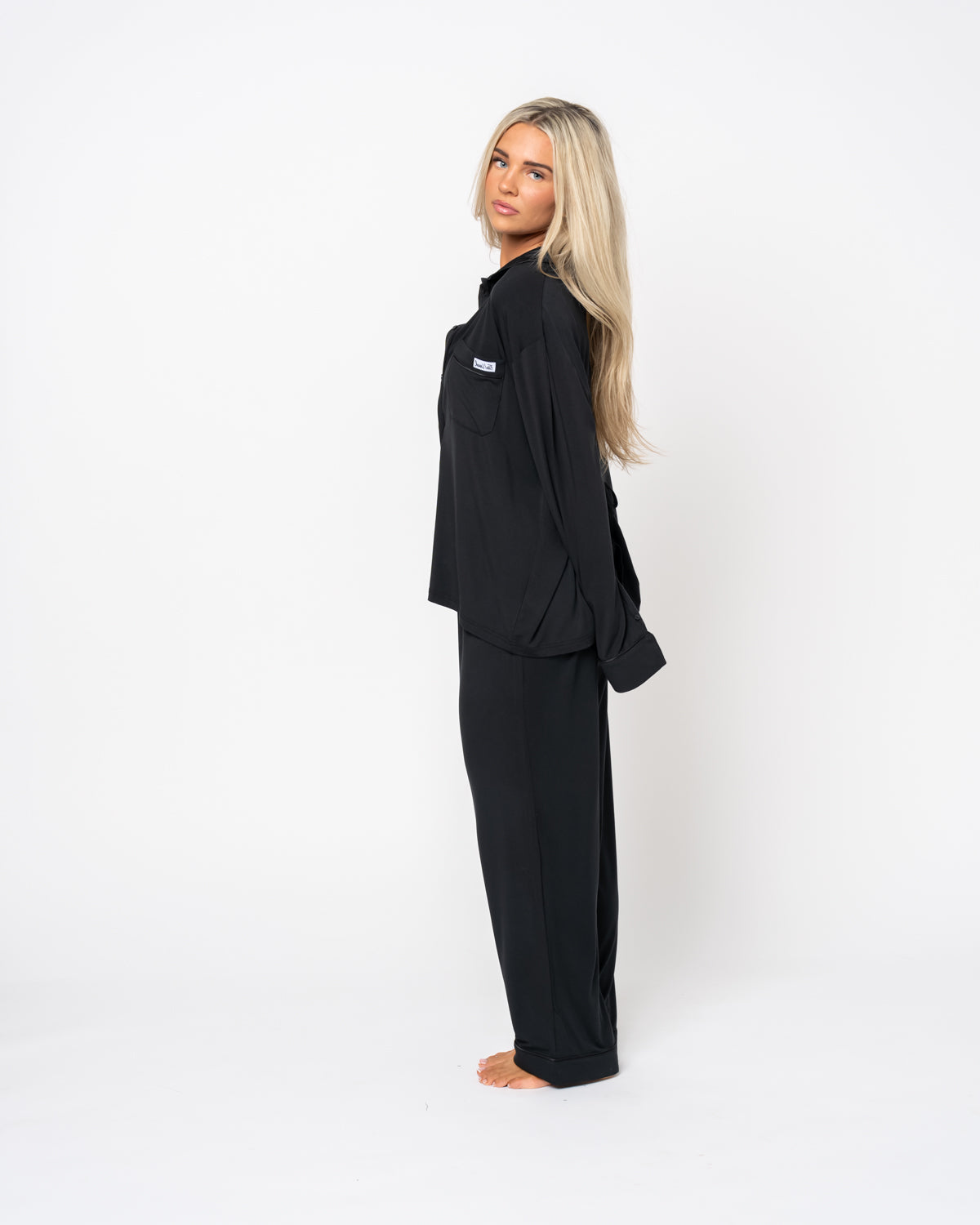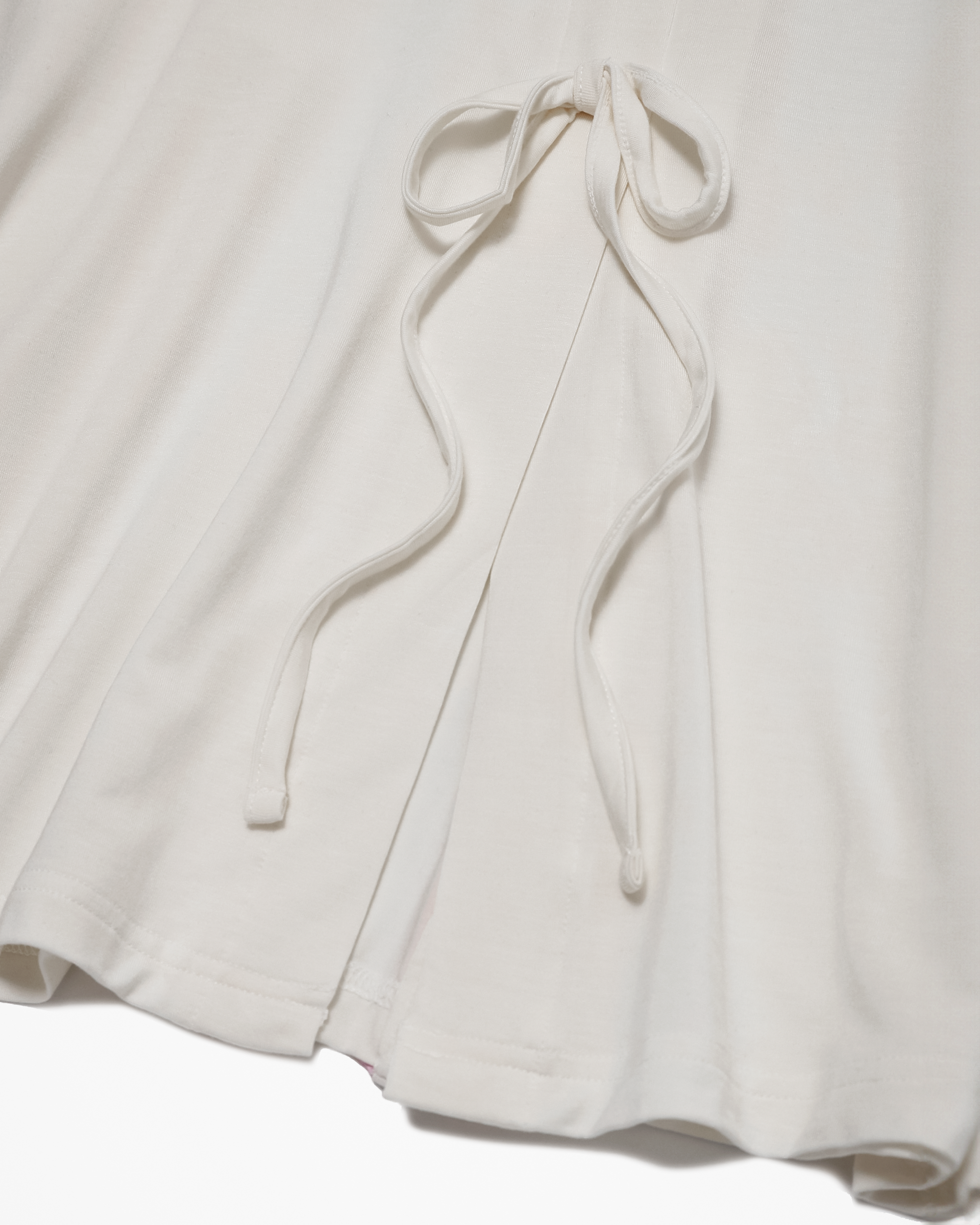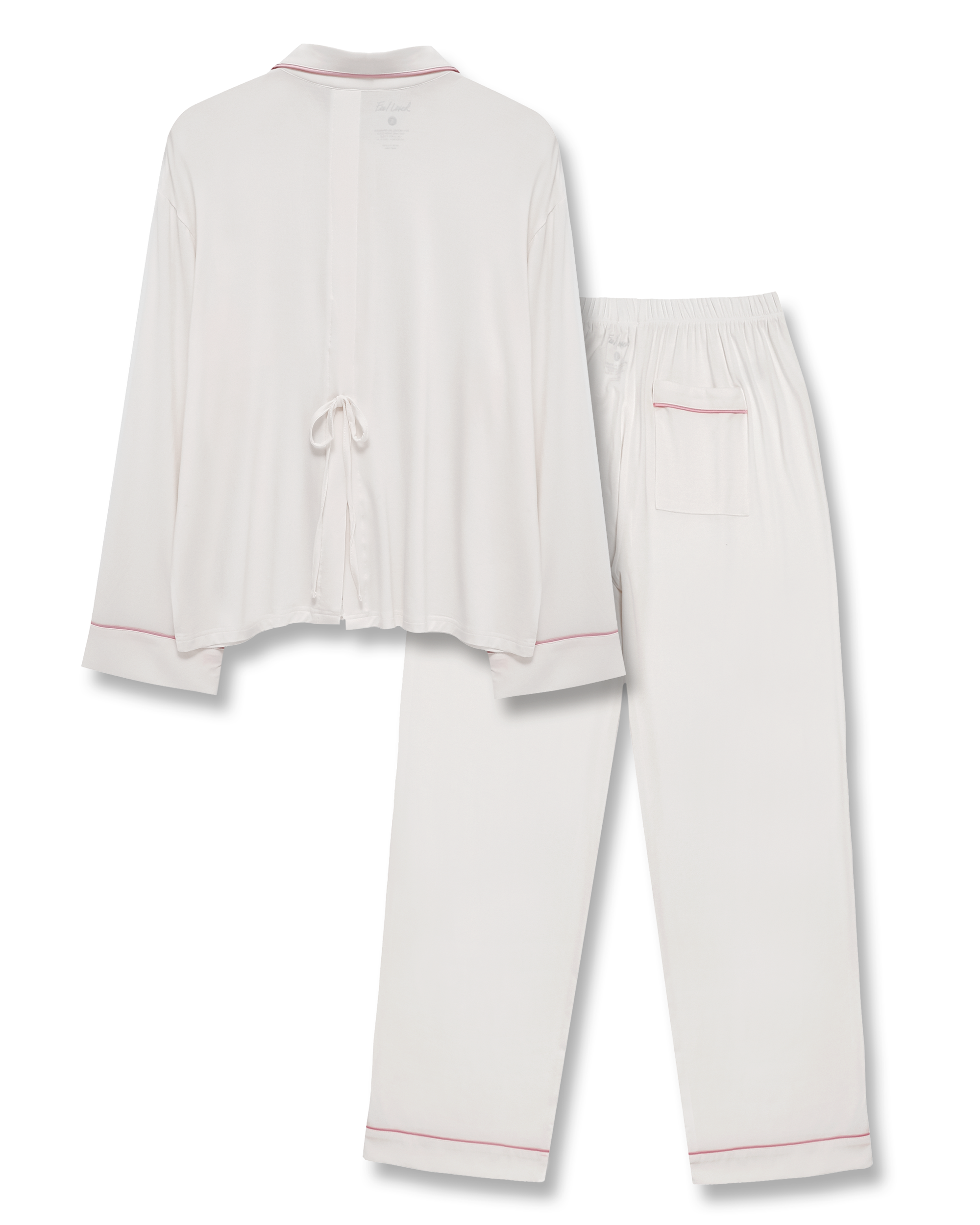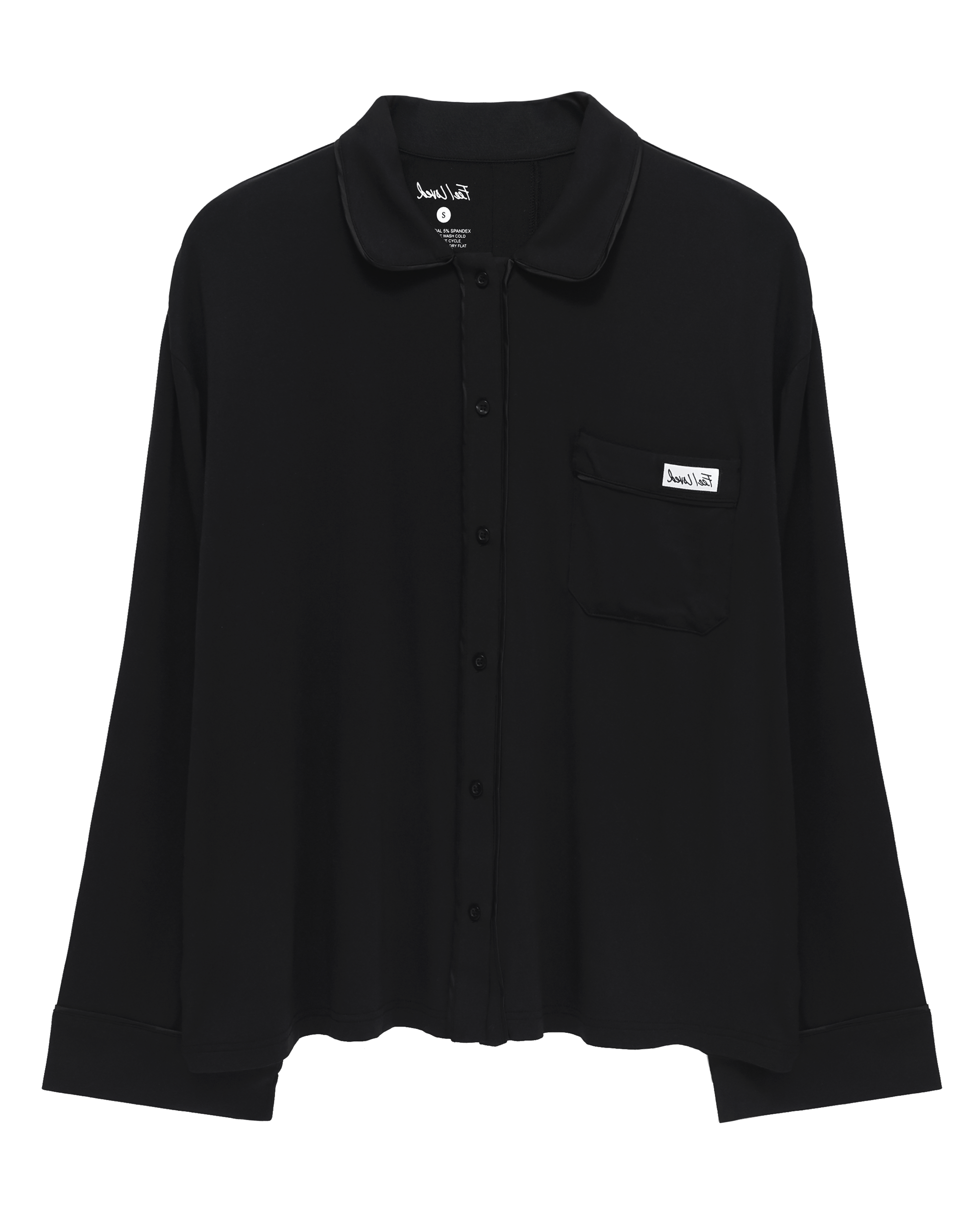 The matching pajama shorts boast the same elegant feel with a 2" inseam and an elastic waistband for a relaxed fit, along with a practical single pocket on the back right.