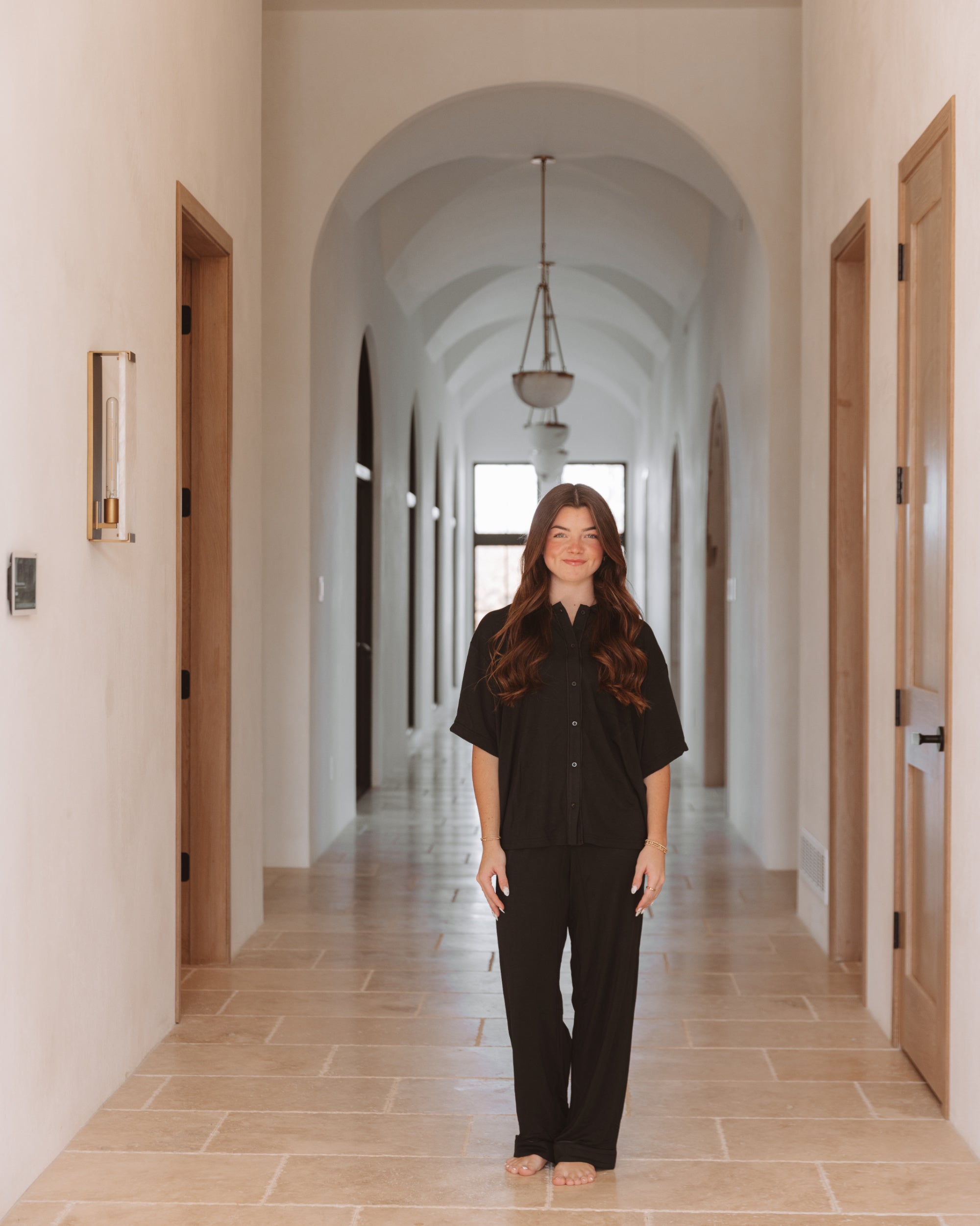 Short Sleeve Pajama Pants Set in Black